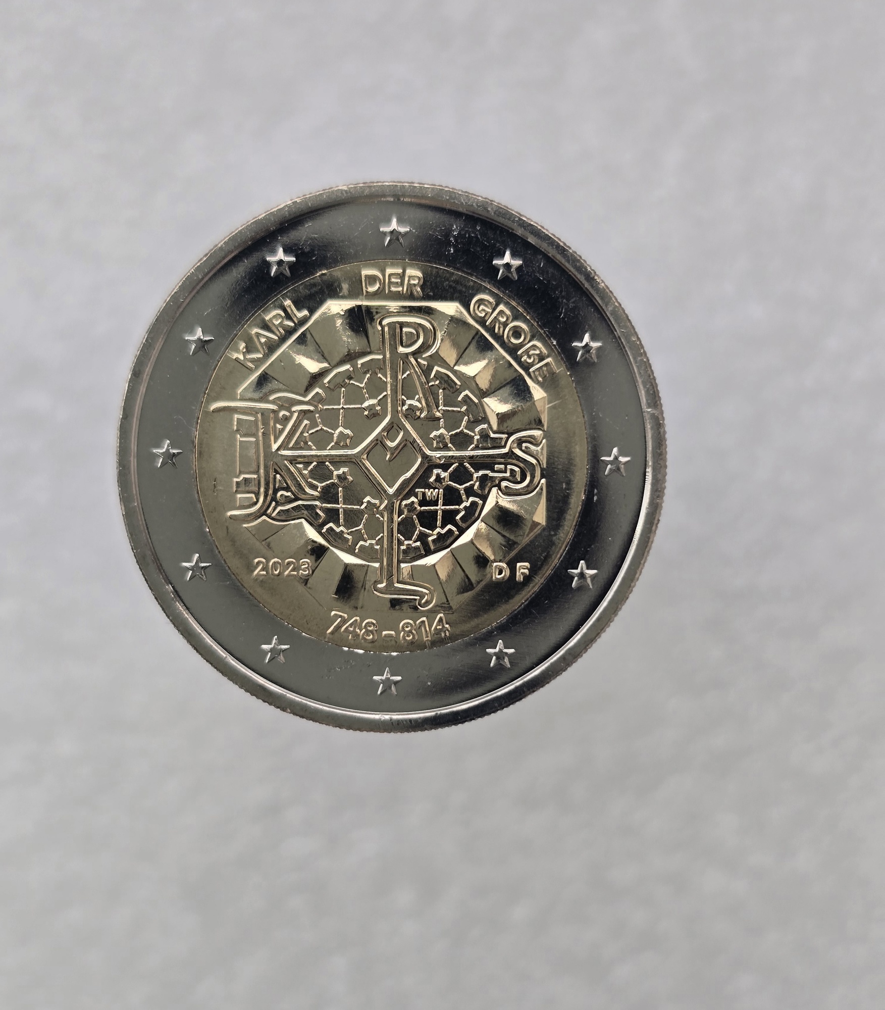Германия. 2 евро 2023г. 1275 лет со дня рождения Карла Великого, двор F, мешковая.