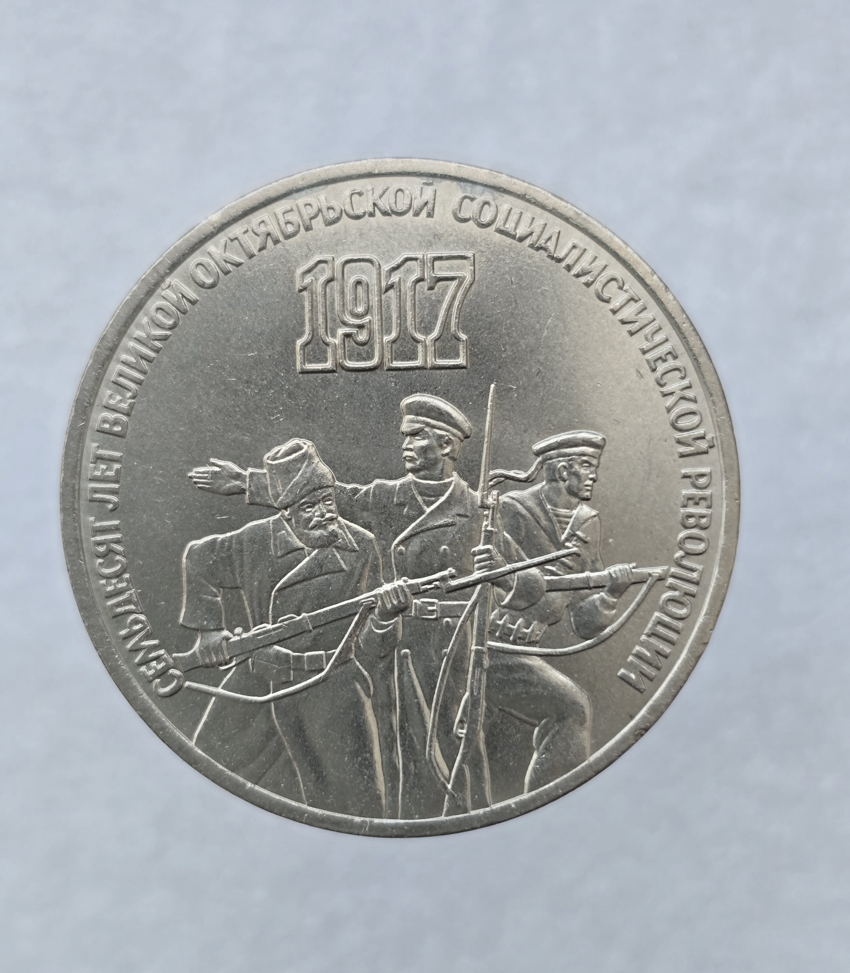 3 рубля 1987 год 70 лет Октябрьской революции мешковое