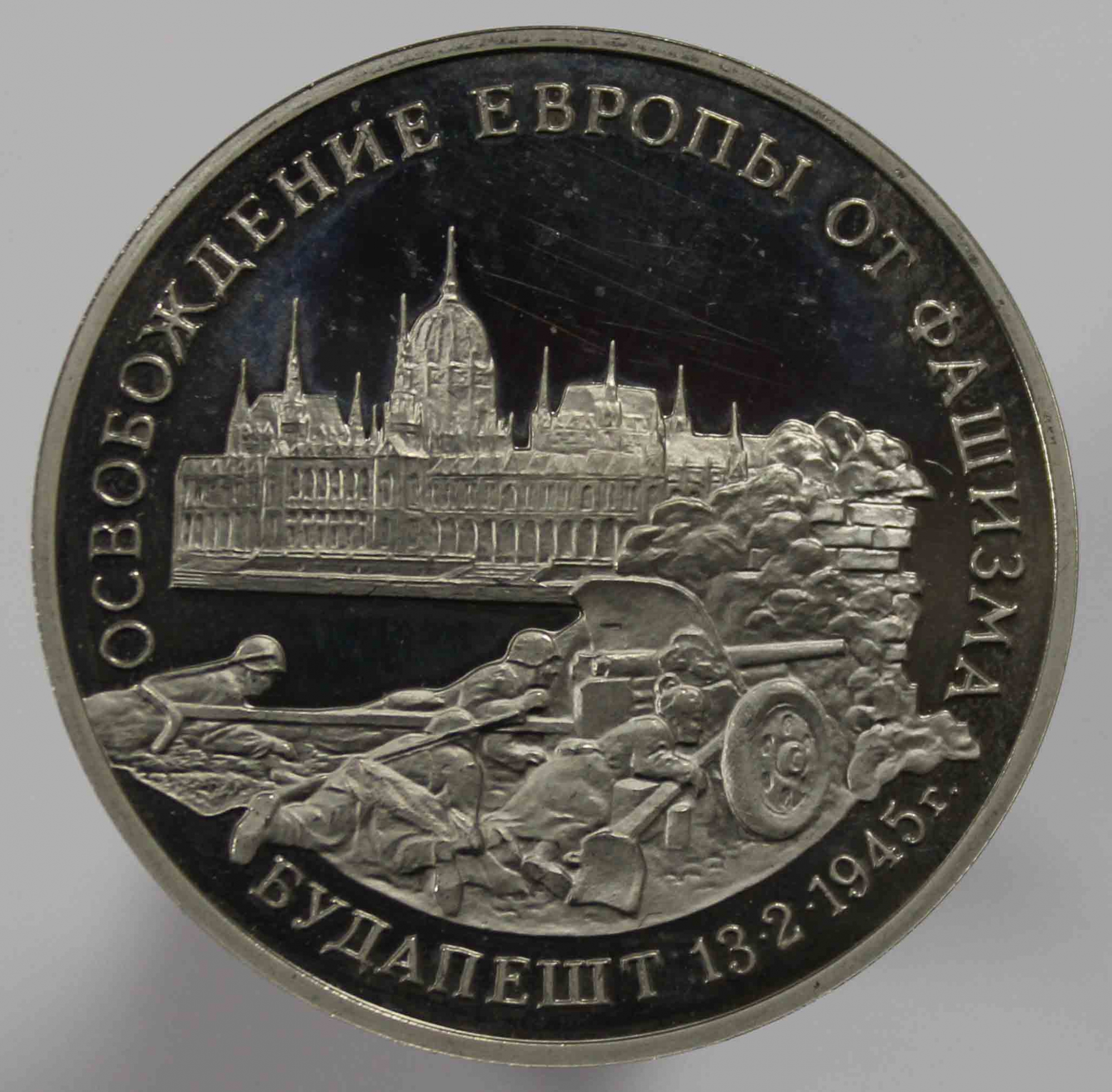 3 рубля 1995г. ММД. РФ. Освобождение Европы от фашизма. Будапешт, пруф , монета в капсуле.