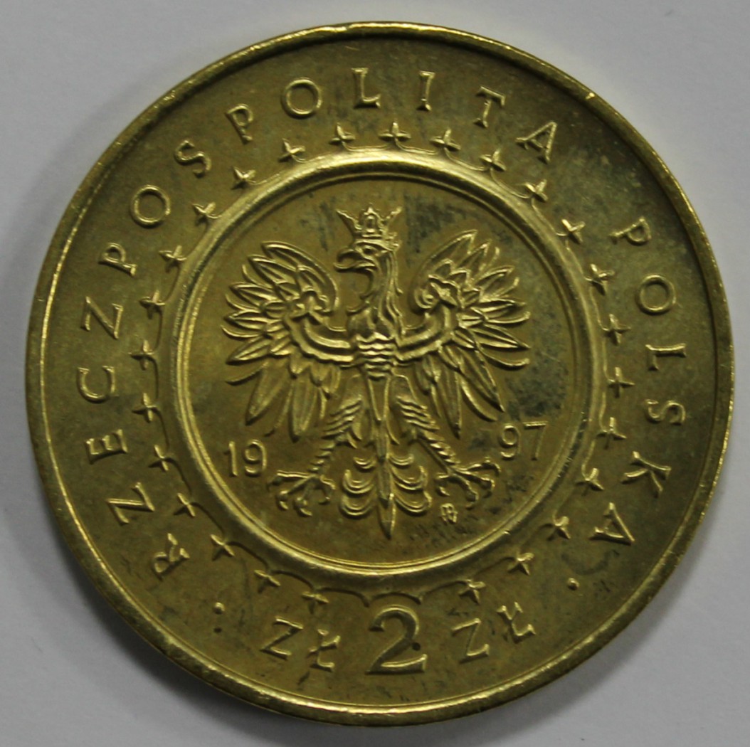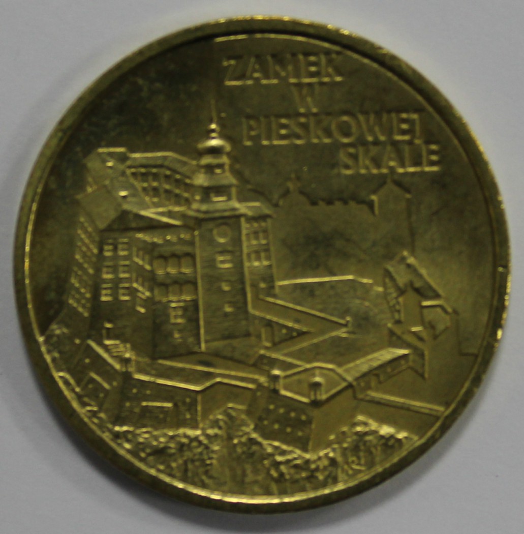 2 злотых 1997г. Замок в Песковой Скале , гурт гладкий, латунь, вес 8,15гр, диаметр 27мм, состояние UNC, тираж 315 тыс.экз.