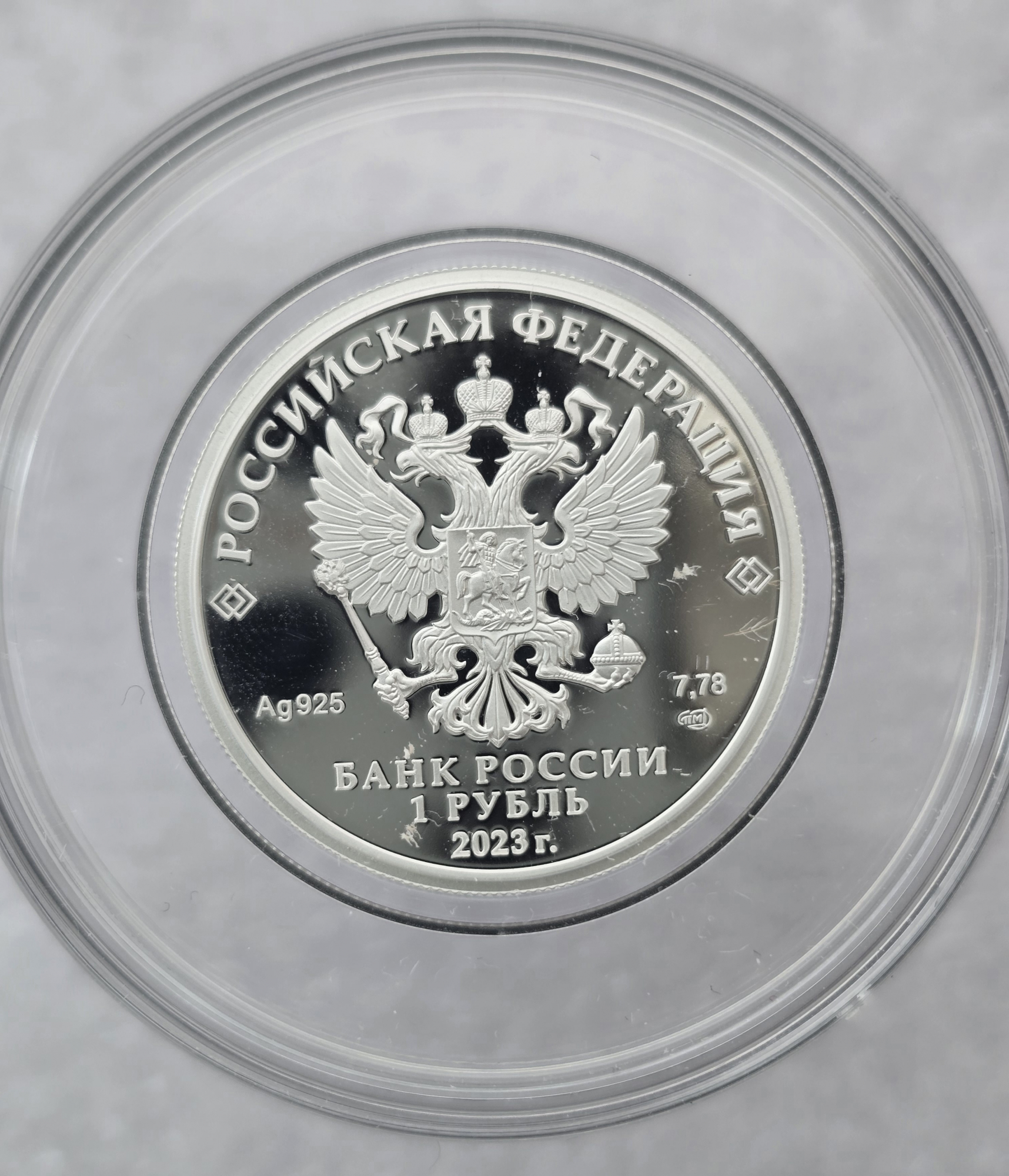 1 рубль 2023г.СПМД. Спортклуб "Динамо", серебро, пруф, сертификат, из капсулы не вынималась.