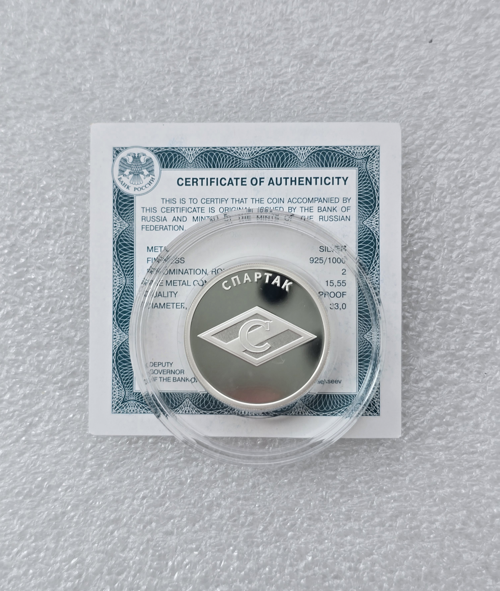 1 рубль 2023г.СПМД. Спортклуб "Спартак", серебро, пруф, сертификат, из капсулы не вынималась.