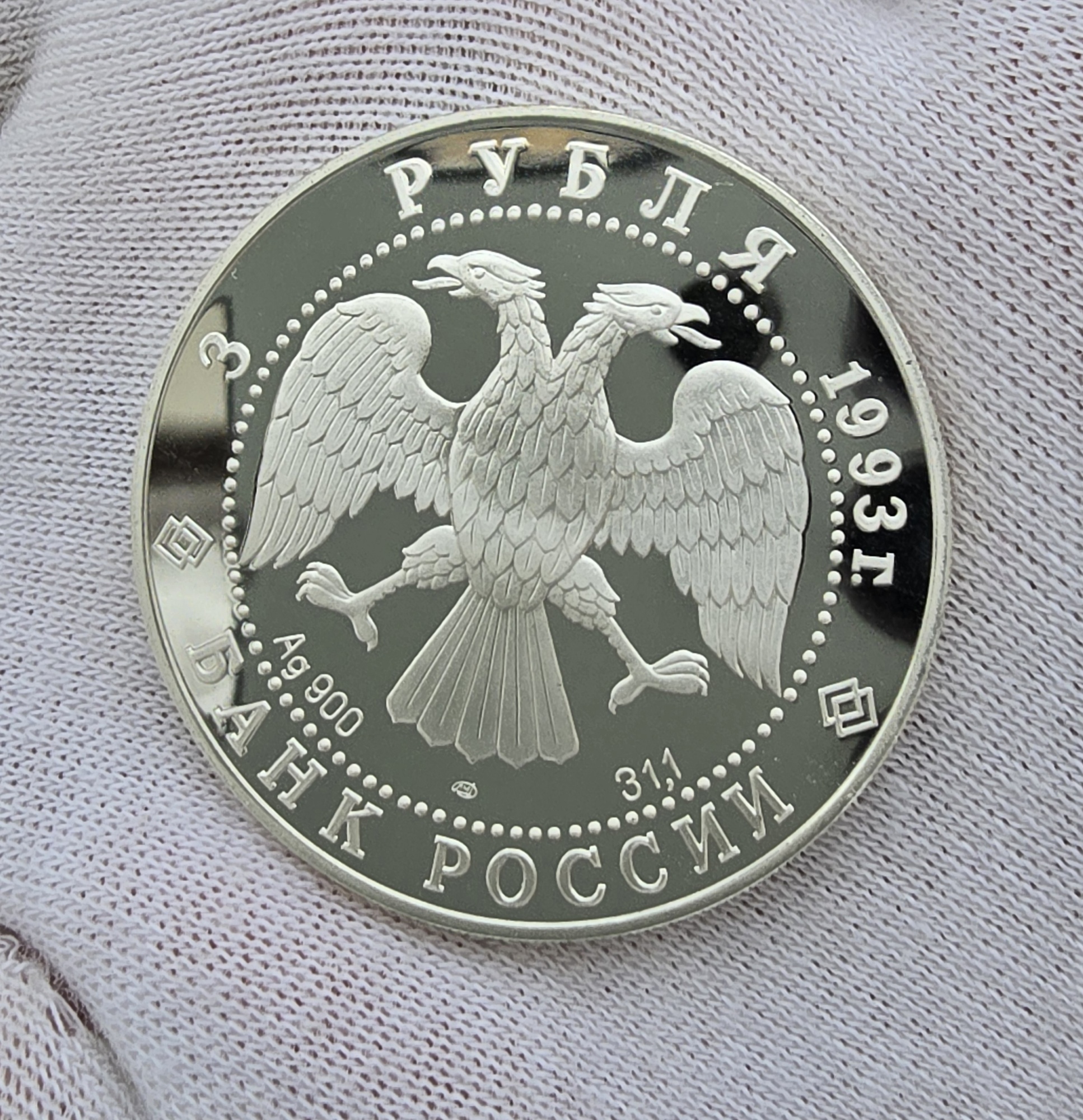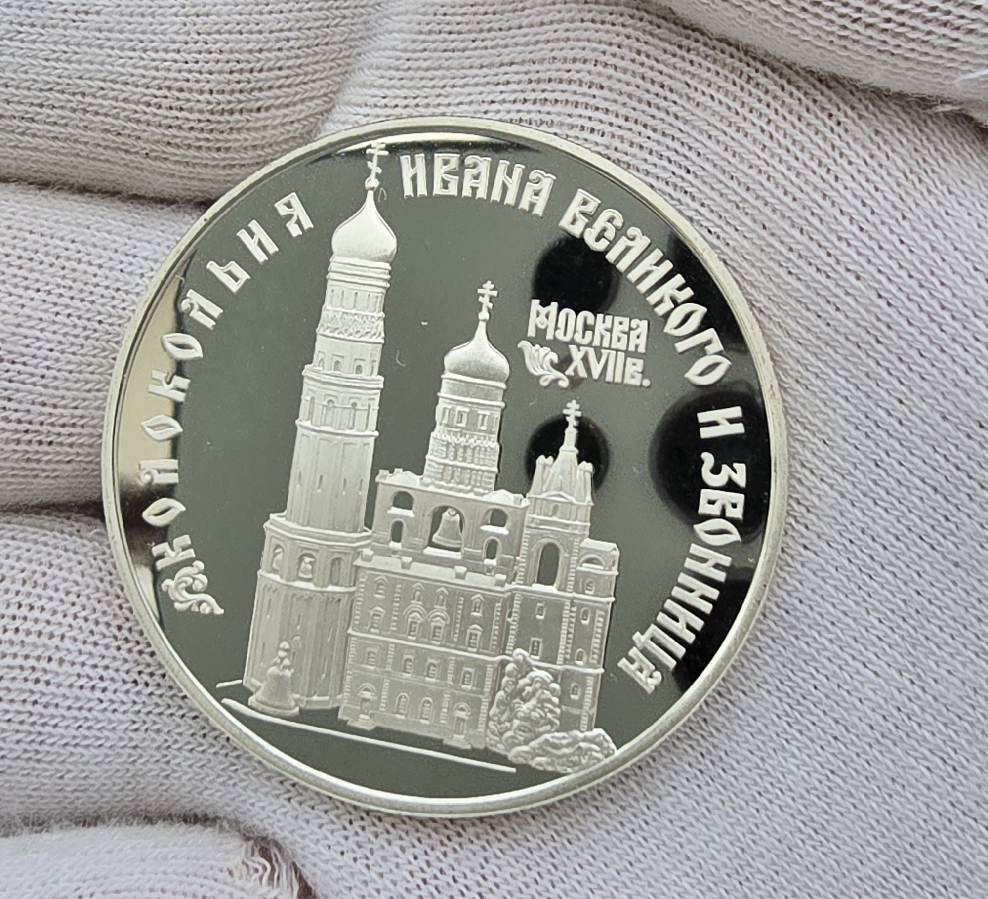 3 рубля 1993г. ЛМД. Колокольня Ивана Великого и звонница, чистого серебра 1 унция, Пруф, монета в капсуле