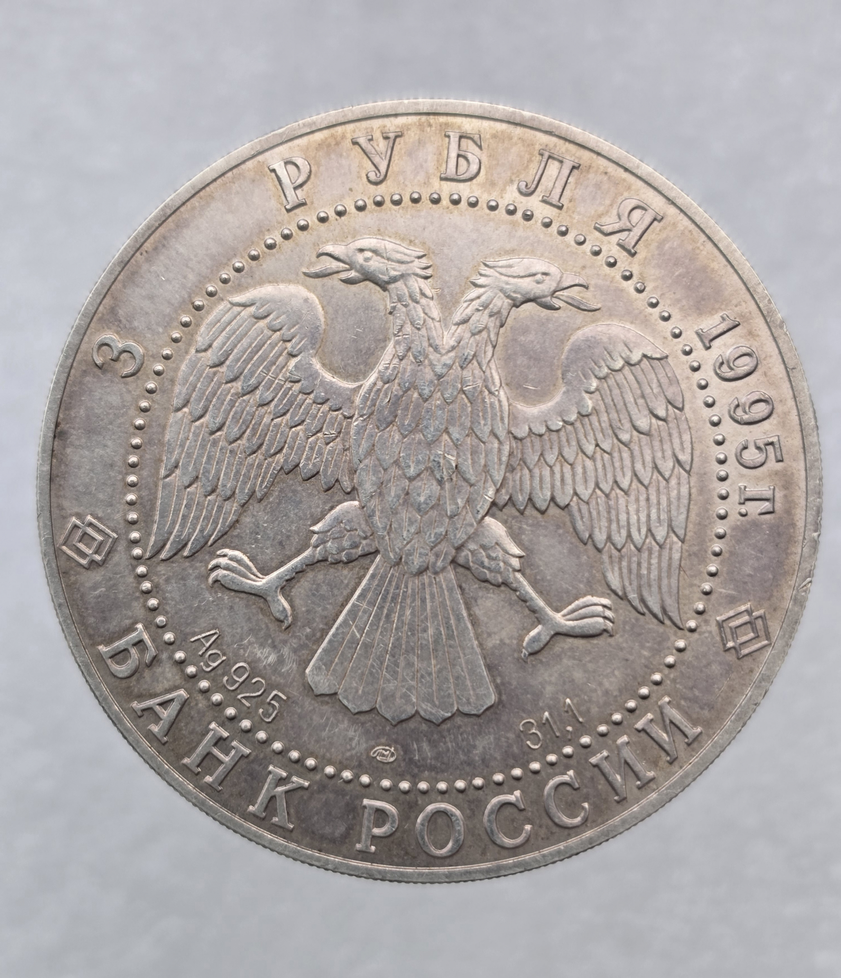 3 рубля 1995г. ЛМД. Соболь, серебро 1 унция чистого, АЦ.
