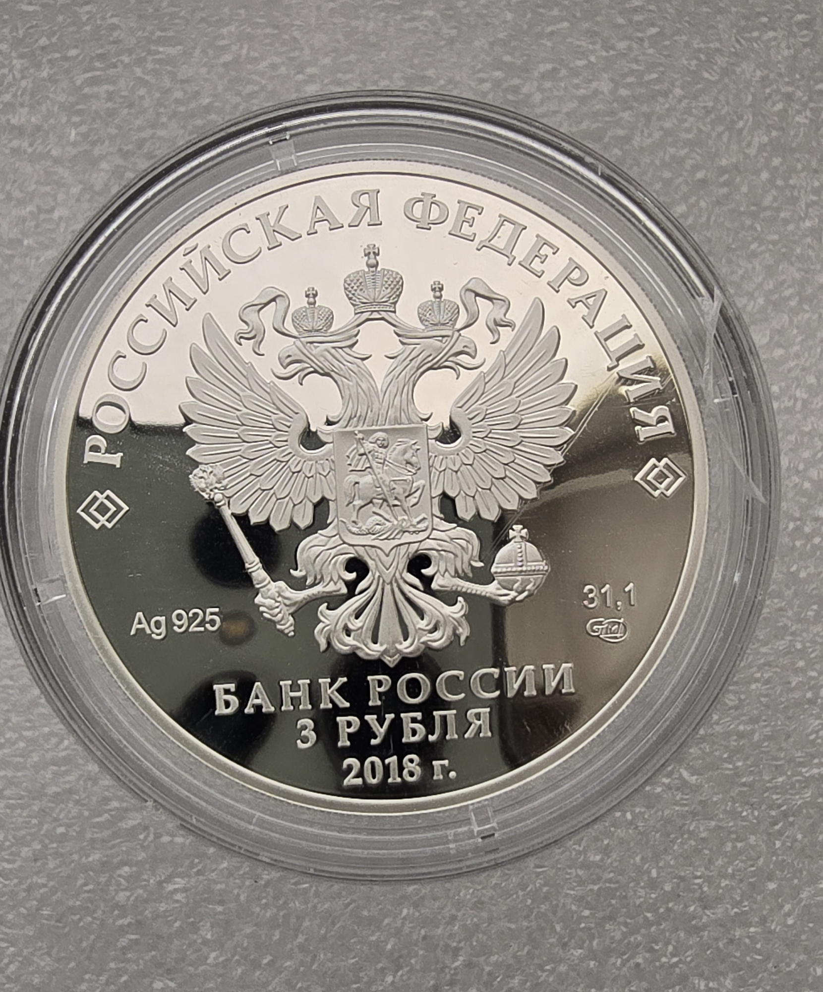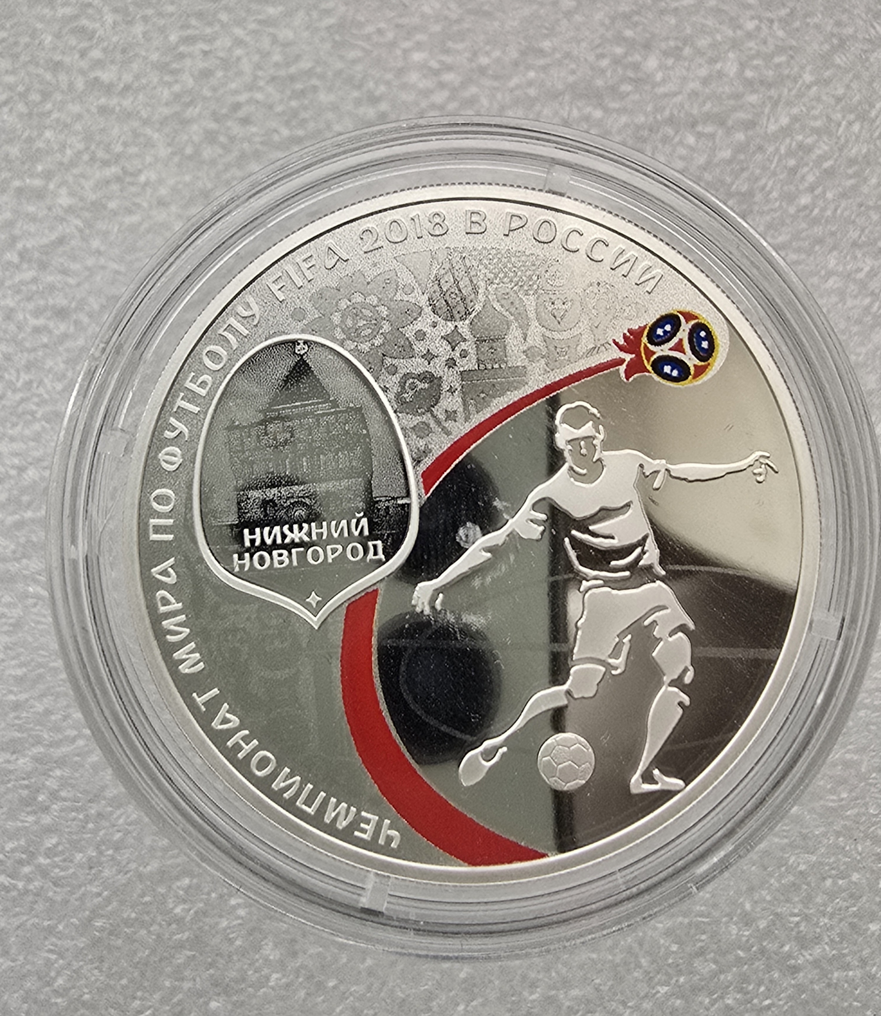 3 рубля 2018г. СПМД. Чемпионат мира по футболу в России 2018. Нижний Новгород , чистого серебра 31,1гр(1 унция), пруф .