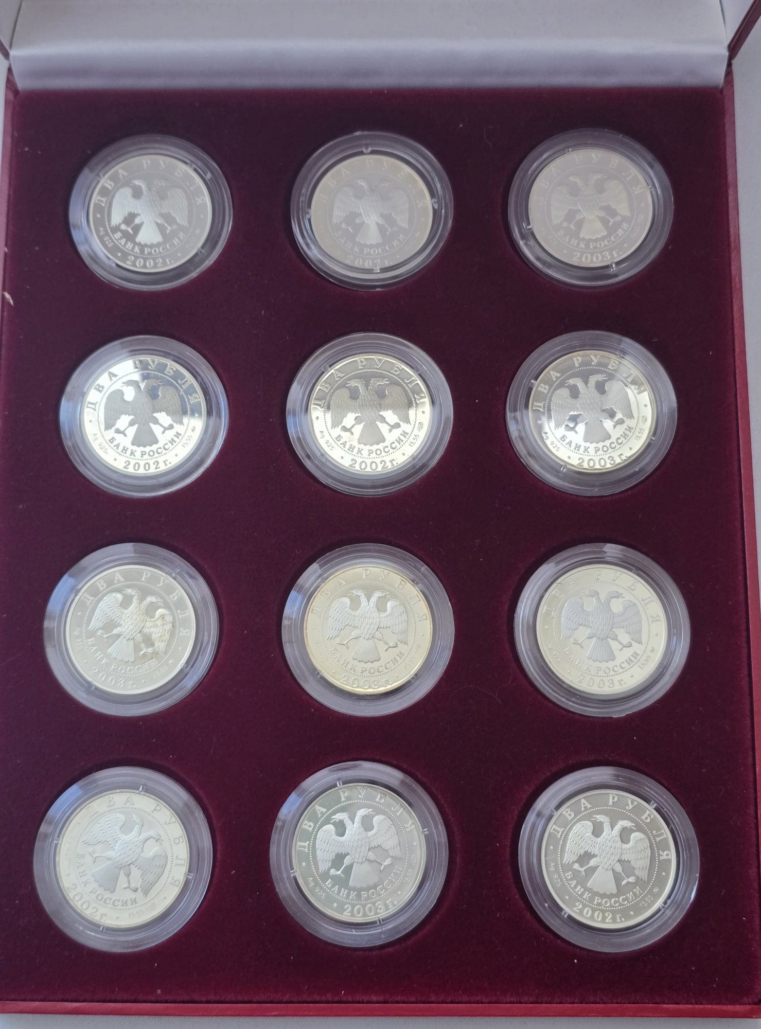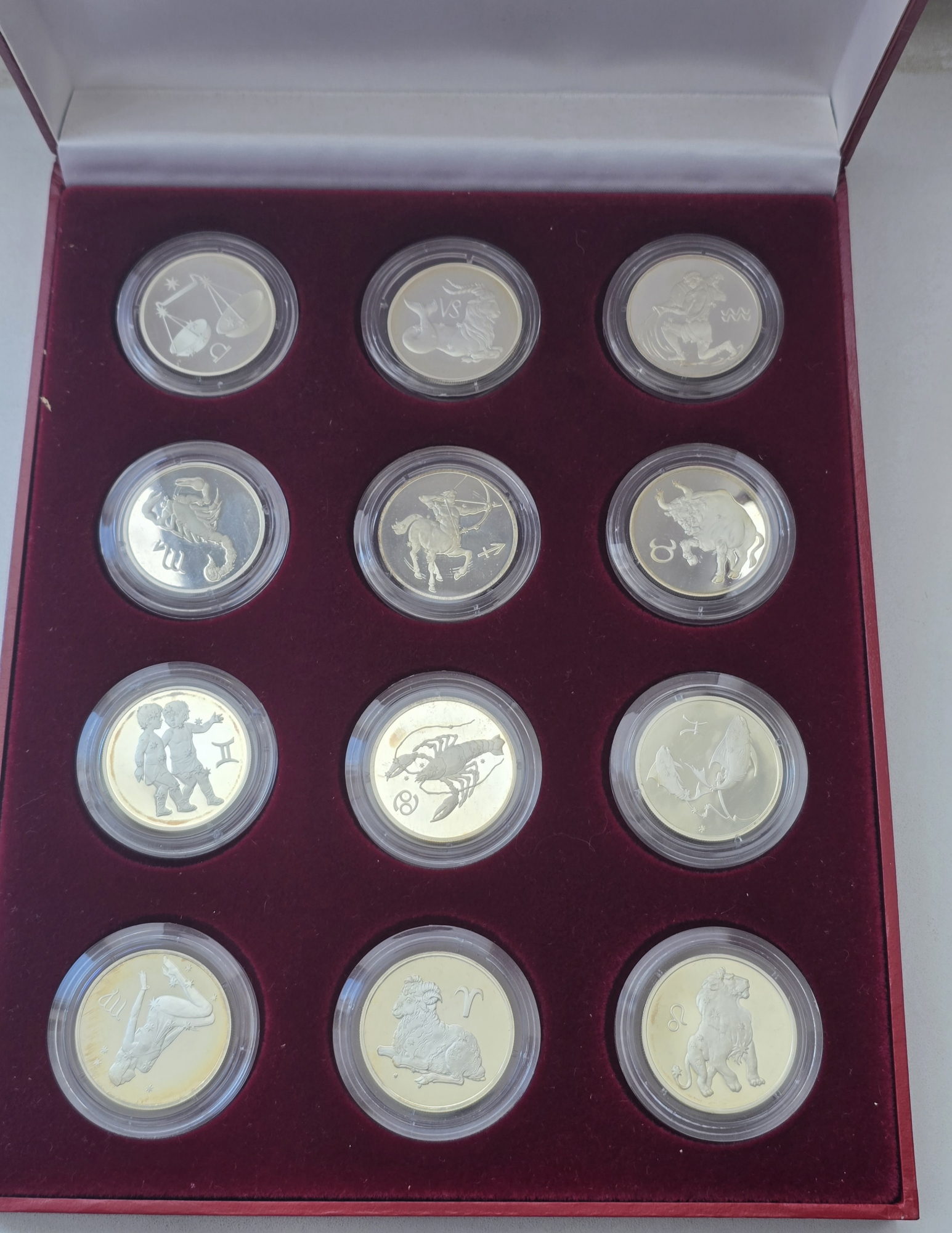 Набор 2х-рублевых знаков зодиака в футляре, серебро, в каждой монете пол-унции чистого, пруф.