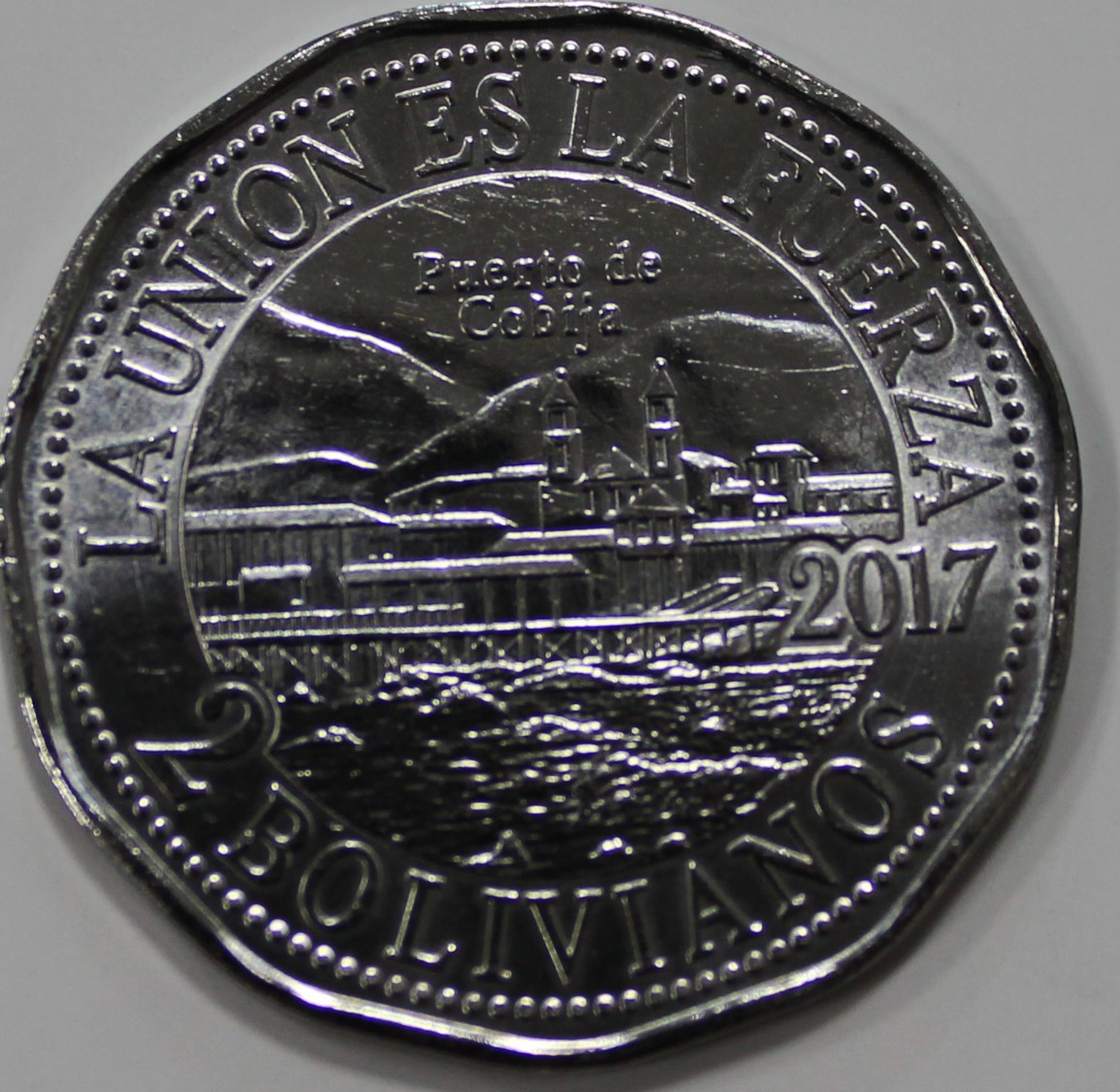 2 боливиано 2017.г. Боливия. Вторая тихоокеанская война. Порт Кобиха, состояние UNC.