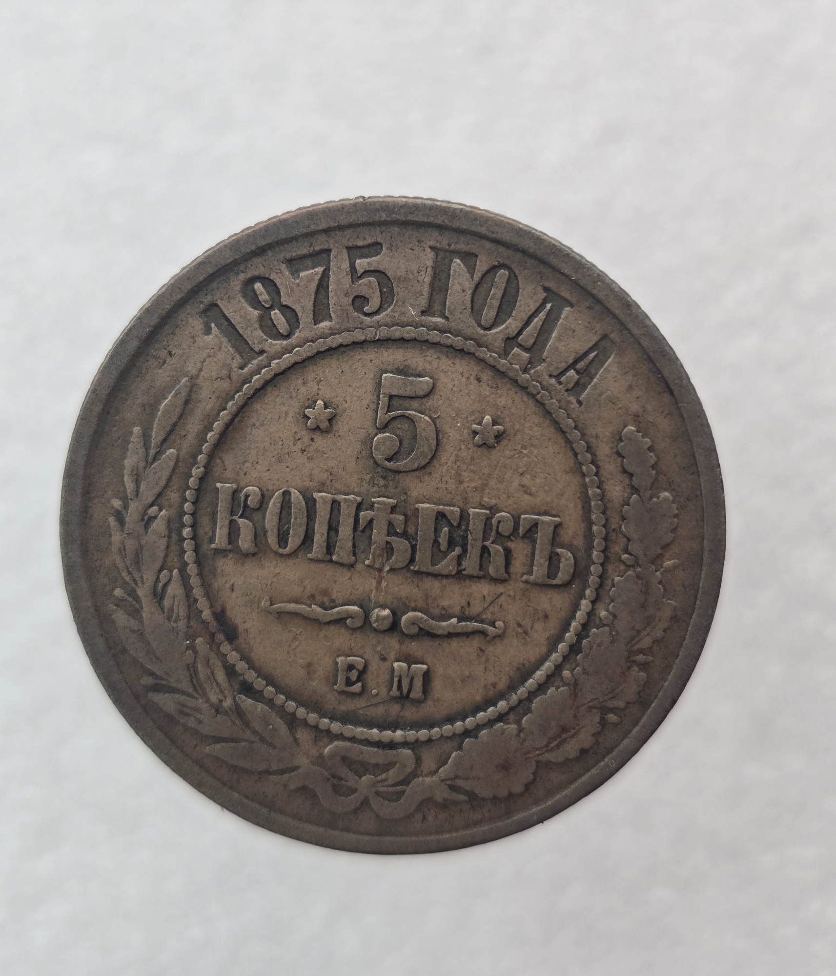 5 копеек 1875г. Е.М. Александр II , медь, XF+, редкость.