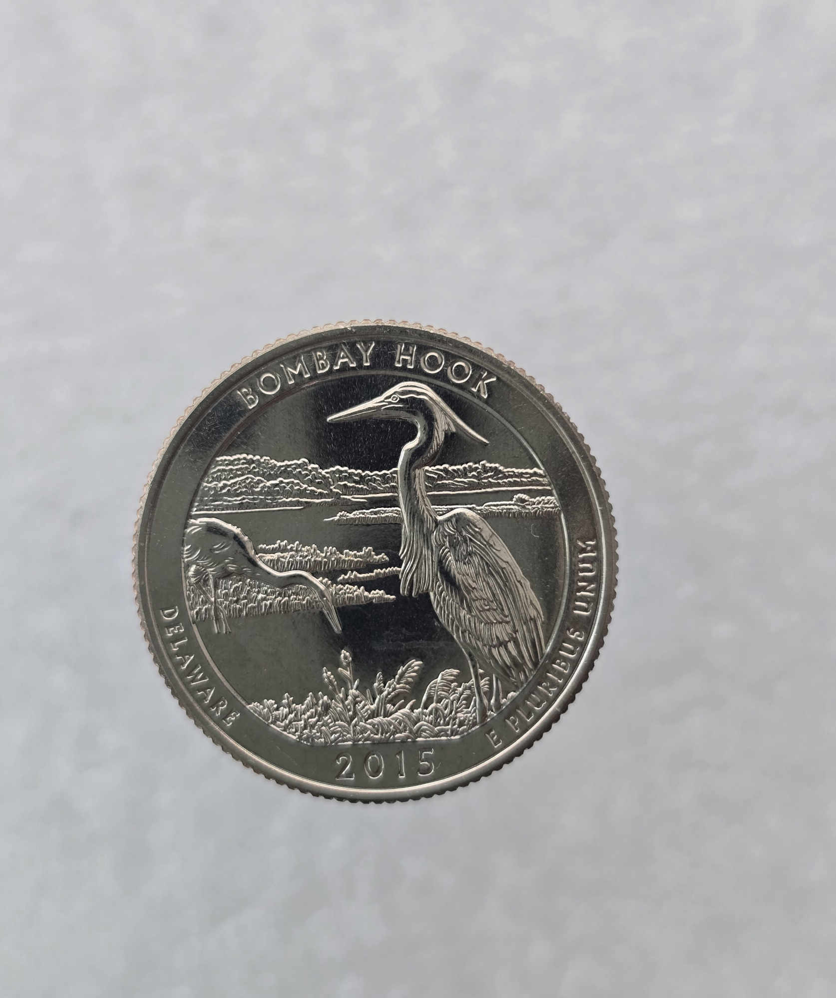 25 центов 2015г. США. D . Национальное убежище дикой природы № 29-Бомбай-Хук. Делавэр, состояние UNC.
