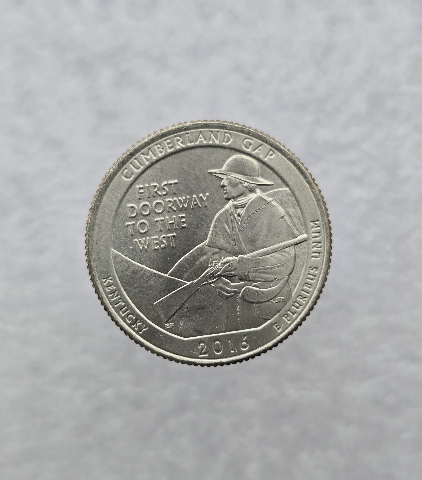 25 центов 2016г. США. D . Национальный исторический парк № 32-Камберленд-Гэп. Кентукки, состояние UNC.