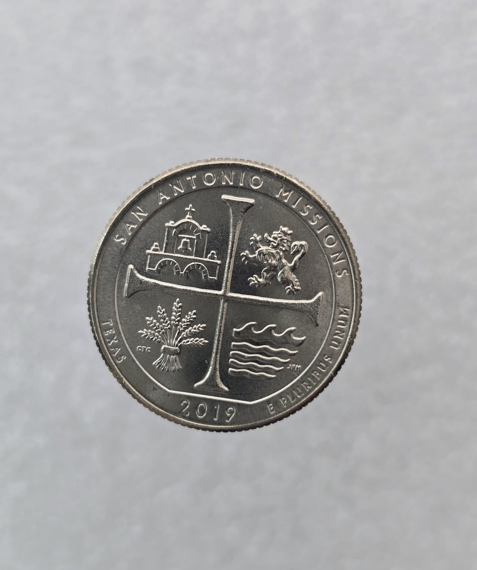 25 центов 2019г. США. D . Национальный исторический парк № 49-Миссия Сан-Антонио. Техас, состояние UNC.