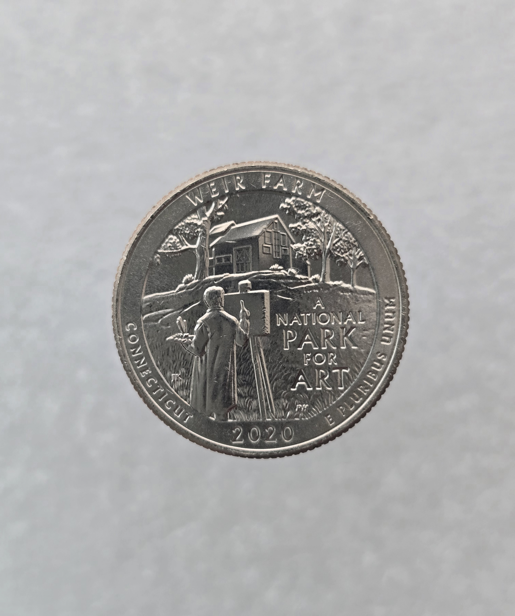 25 центов 2020г. № 52. D .Национальное историческое место Ферма Дж. А. Вейра. Коннектикут, состояние UNC.