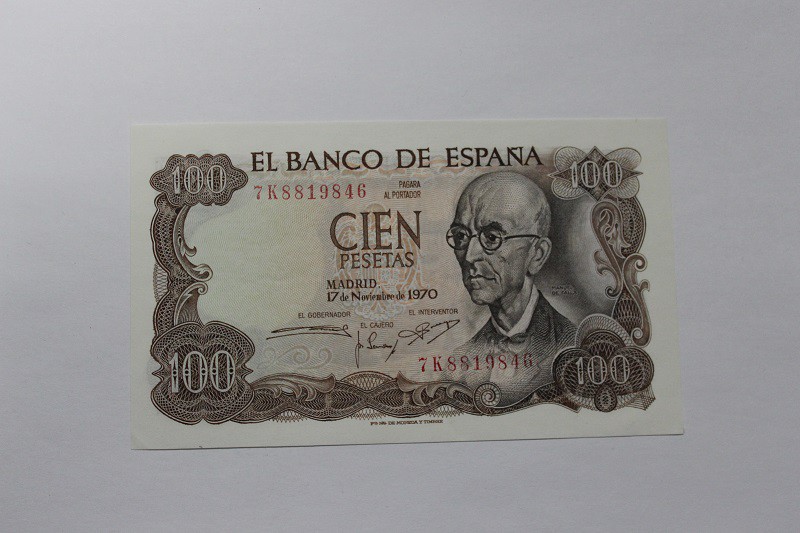 Банкнота 100 песет 1970г. Испания. Правление Франко. Портрет Мануэля де Фалла,состояние-пресс