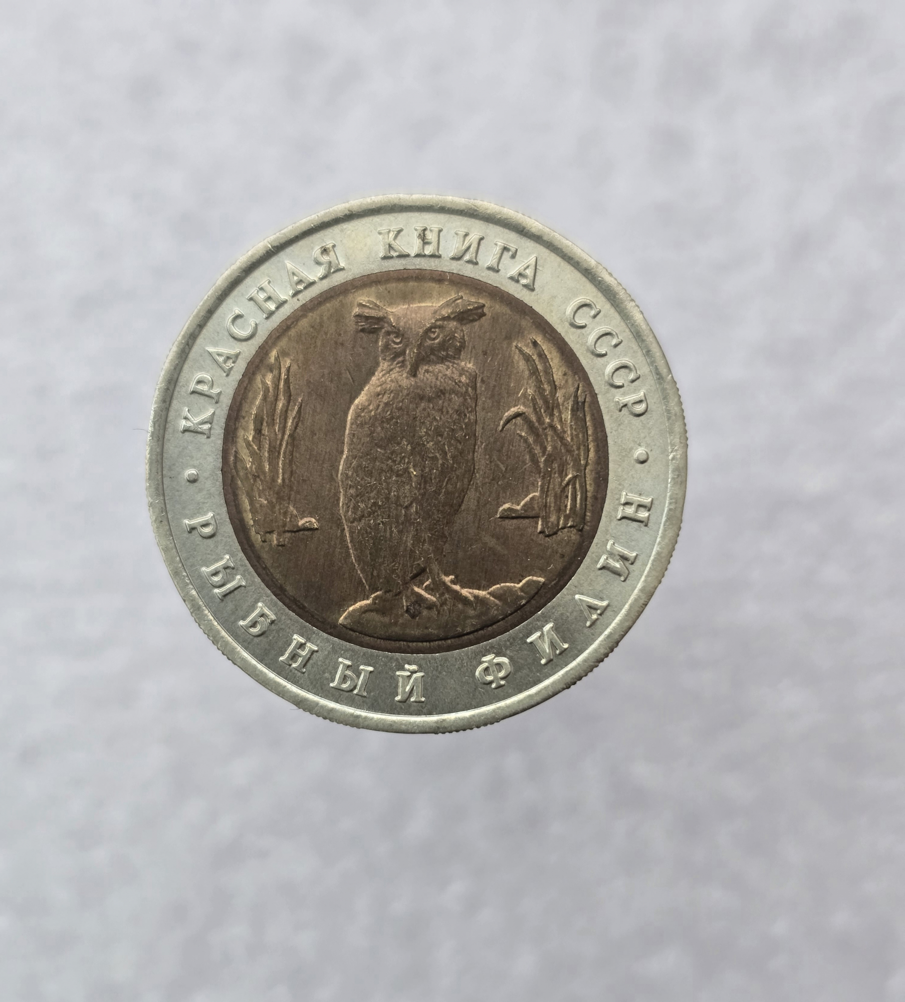 5 рублей 1991г. ЛМД. Рыбный Филин . Красная книга , биметалл, мешковая.
