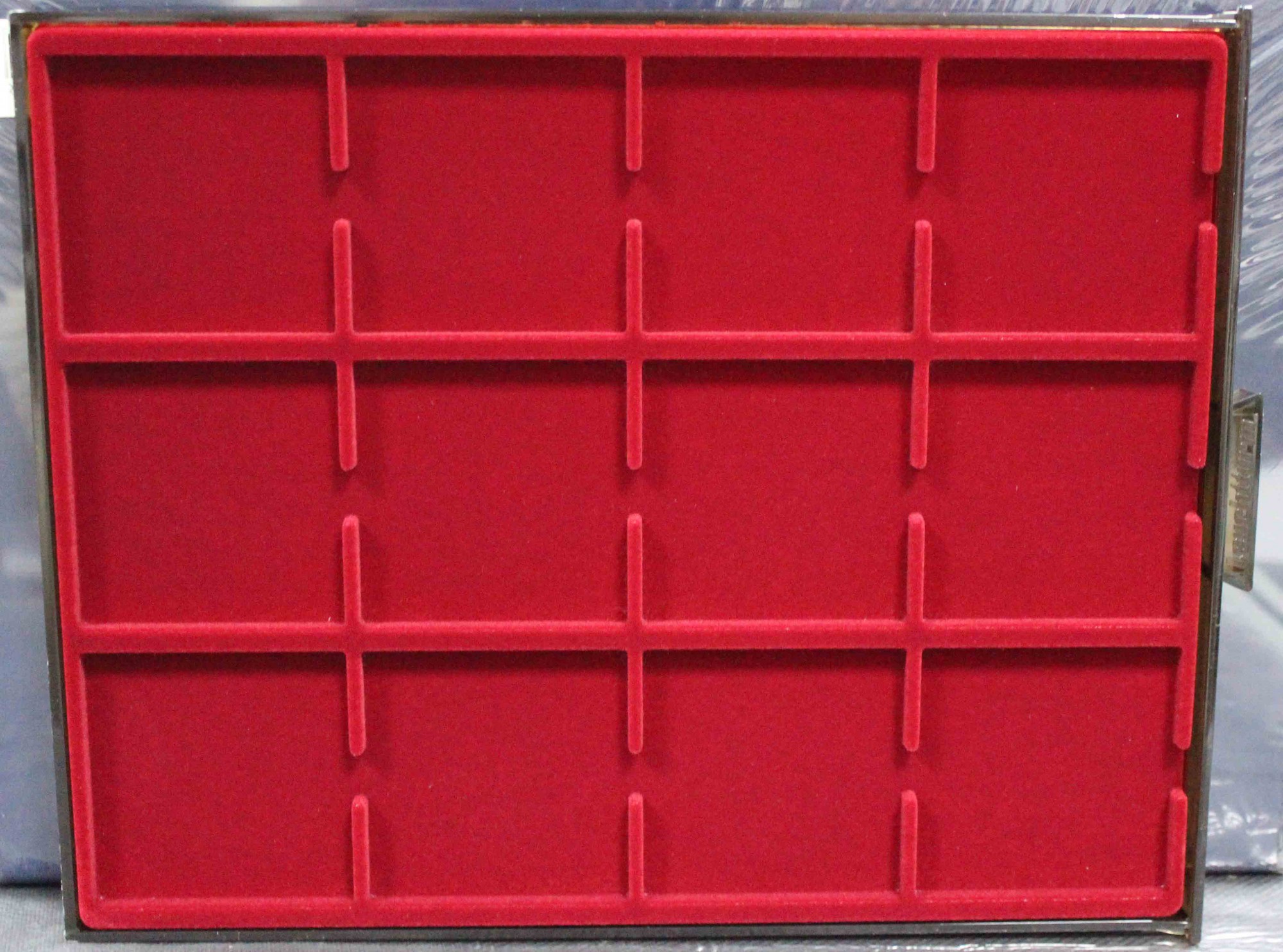 54Размер кассеты: 235х303х20 мм, материал: пластмасса, внутри красный бархат. Размер ячейки: 64х64 мм.
