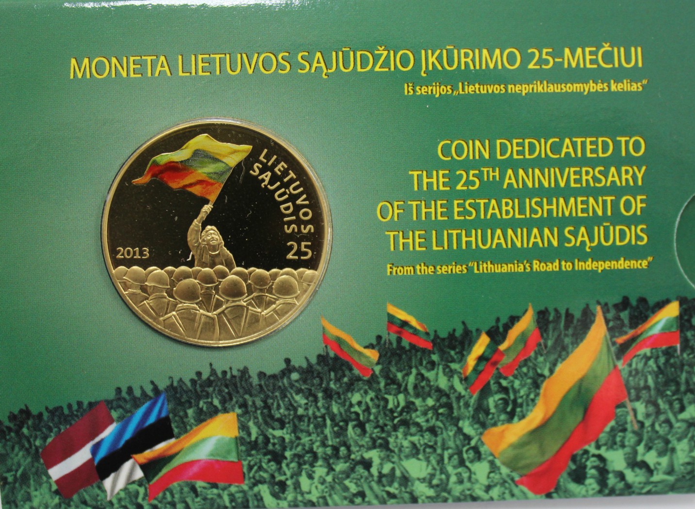 25 лит 2013г. Литва, 25 лет Саюдис, UNC, цветная, в буклете .