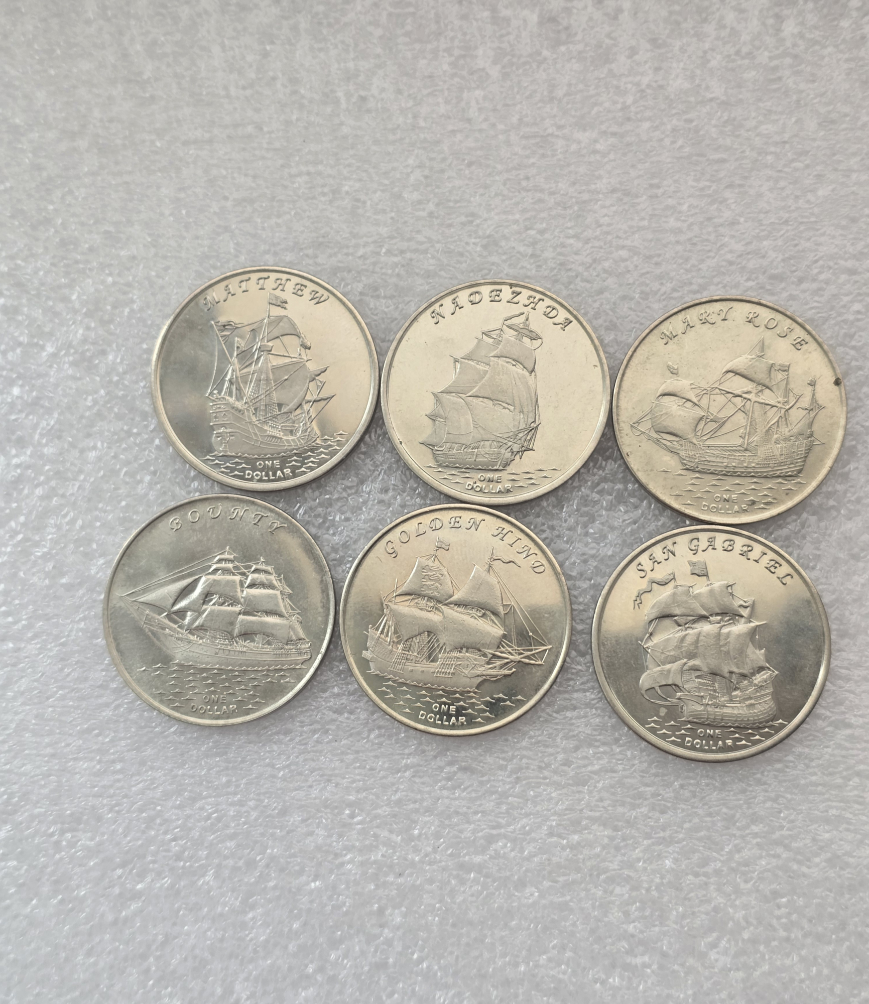 О. Гилберта. Набор из 6 монет 1 доллар 2015г. Парусники, состояние мешковое.