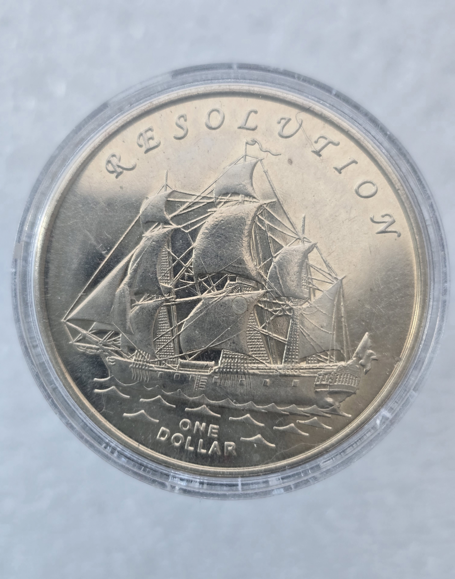 Остров Гилберта (Кирибати) 1 доллар 2014г. Парусник Резолюция, мешковая.