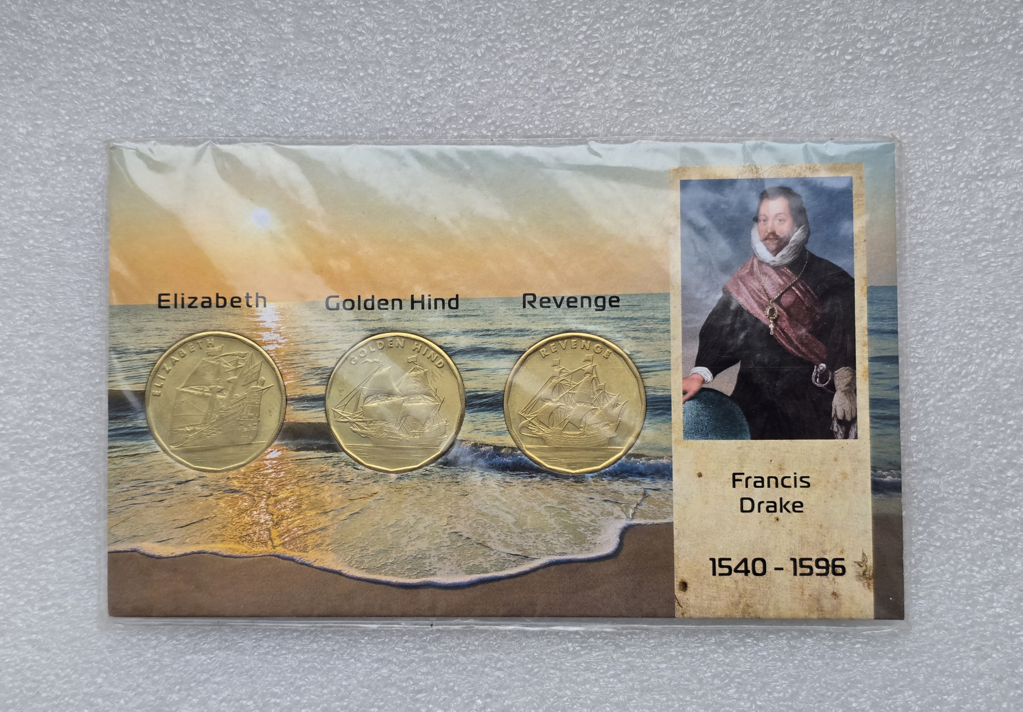 Остров Тернате. Набор 3 монеты, посвященный Френсису Дрейку, пирату, мореплавателю, адмиралу., в запайке.
