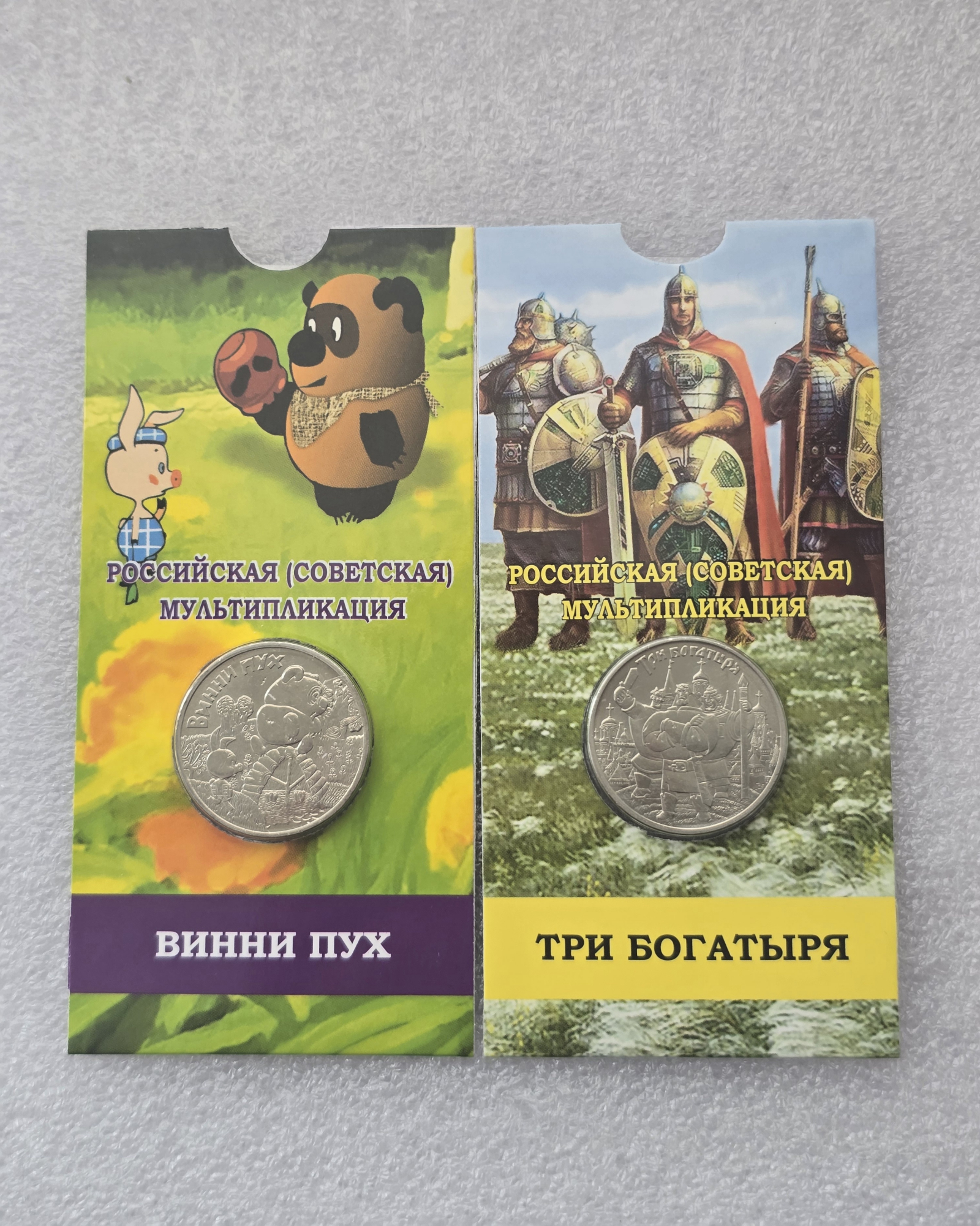Акция к 23 февраля !!! Блистеры в подарок !!! 25 рублей 2017г. ММД. Винни Пух и Три Богатыря, набор из 2х монет, состояние UNC