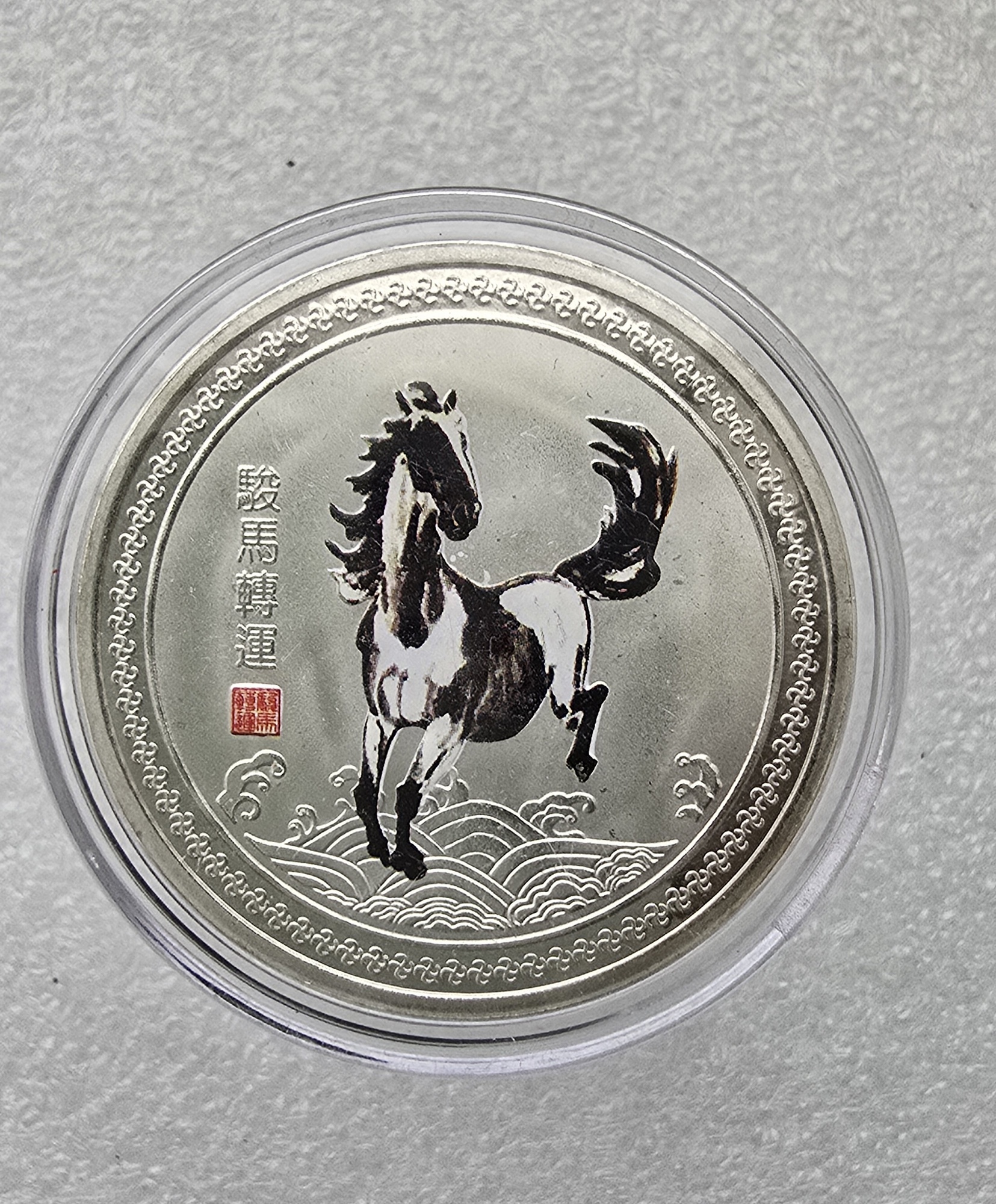 Подарочный жетон "Год Лошади", серебрение, цветной, UNC, в капсуле.