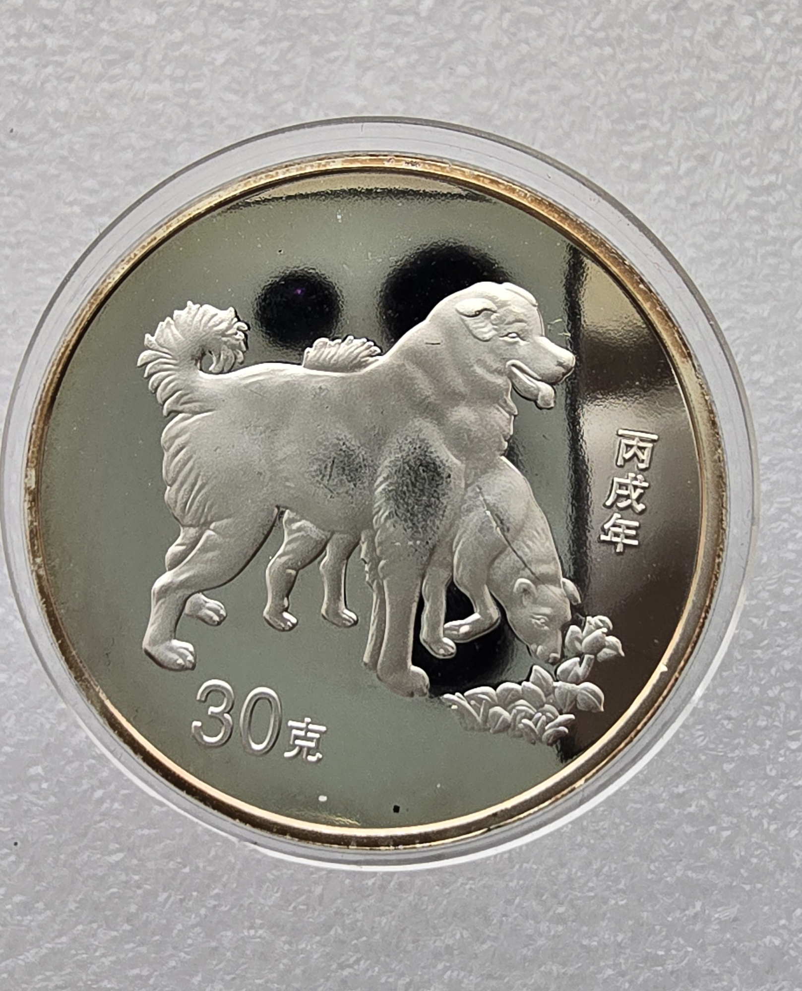 Подарочный жетон "Год Собаки", серебрение, UNC, в капсуле.