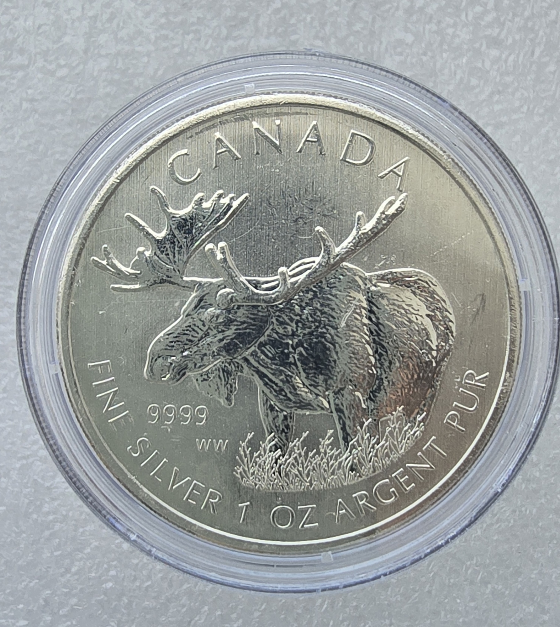 Канада . 5 долларов 2012г. Елизавета II, Лось, чистого серебра 1 унция, UNC.