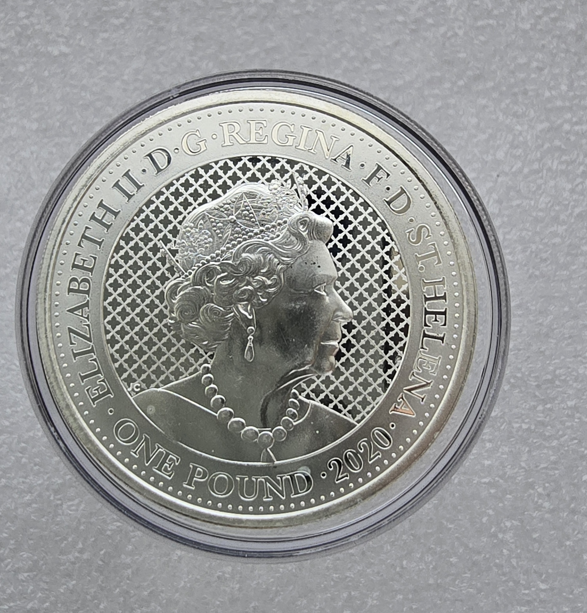 Острова Святой Елены. 1 фунт 2020г. Павлин, серебро 1 унция, UNC, монета в капсуле.