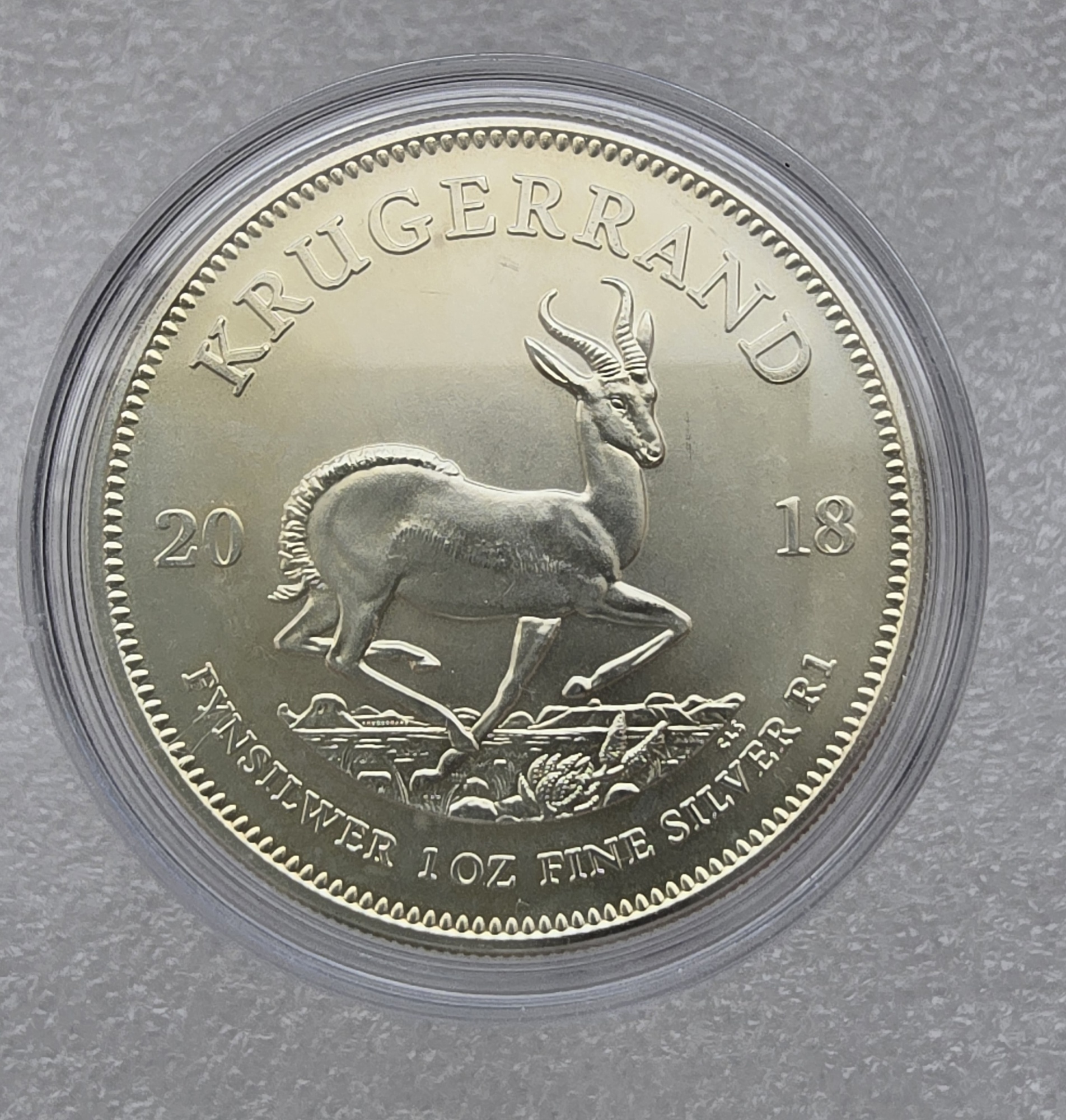 Южная Африка. Крюгеранд 2018г. Газель, чистого серебра 1 унция, UNC, монета в капсуле.