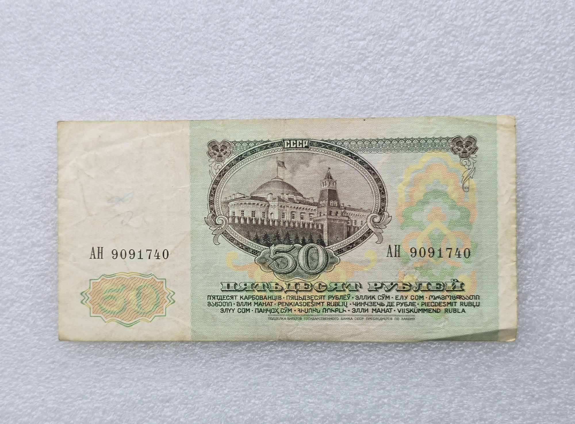 Банкнота 50 рублей 1991г. Билет Государственного Банка СССР, серия АН 9091740, VF+.