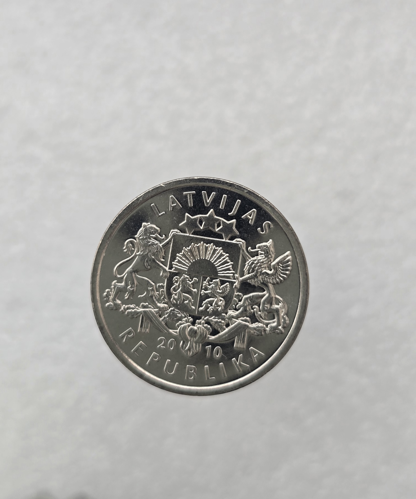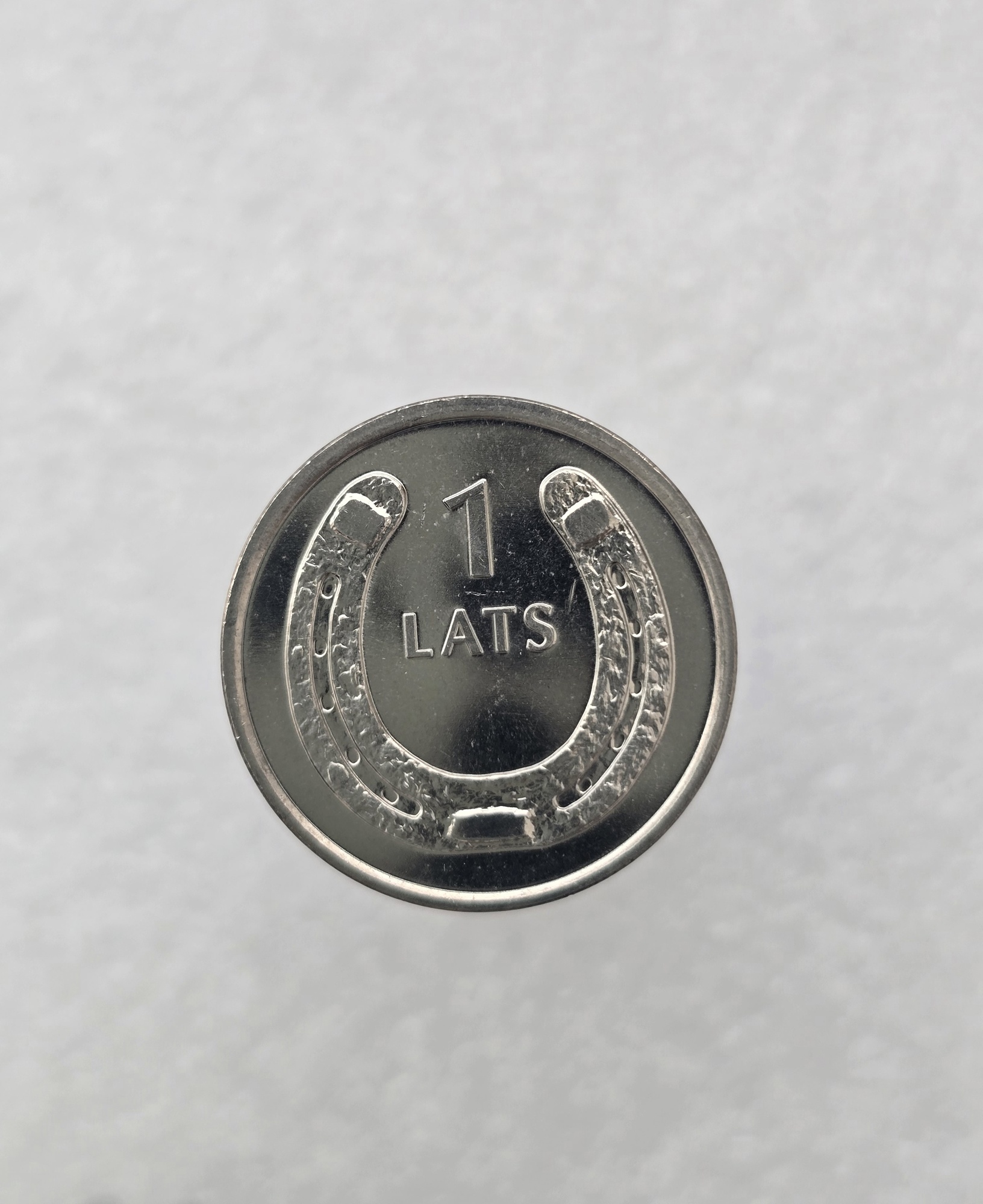 1 лат 2010г. Латвия. Подкова вниз, состояние UNC.